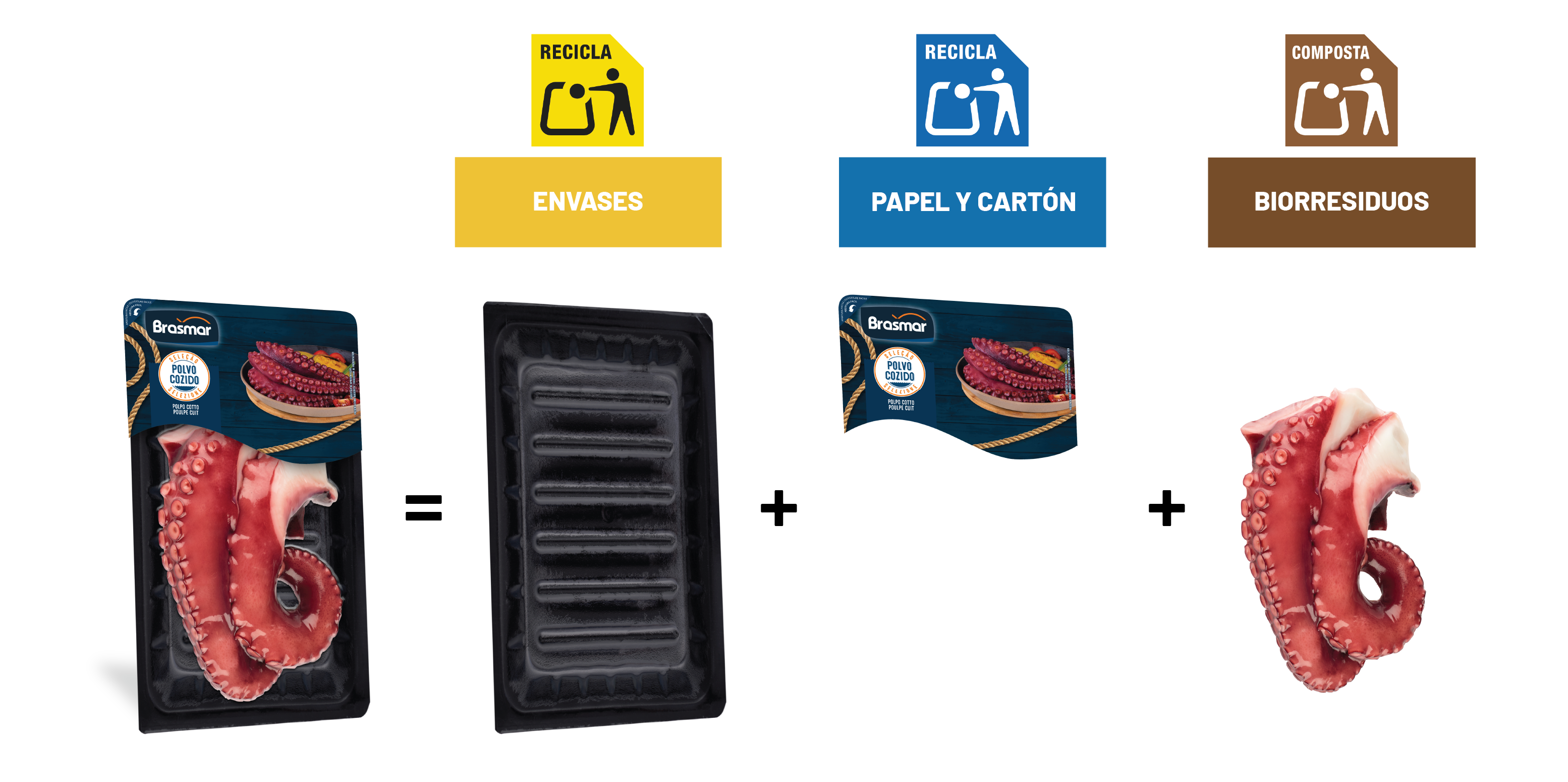 La mayoría de nuestros envases deben depositarse, vacíos y escurridos, en el contenedor amarillo de reciclaje. Si el envase es de cartón (cajas de cartón, por ejemplo), debe depositarse en el contenedor azul de reciclaje.
